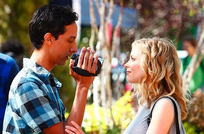 Community as the Jeff and Britta show continues, now with some Abed. The A story is about Abed taking a film class which Britta paid for, in opposition to his dad, who wants him to stay in the family falafel business. Jeff counsels against Britta getting involved, and the two fight over the benefits of getting involved vs. staying out of it for the entire episode, often while being filmed by Abed, and getting into a fight with Abed’s dad. Britta and Jeff take on a mom and dad role relative to Abed, and eventually Abed’s film moves his dad to understand. We get a little bit more of Abed’s inability to relate with people, and his use of film as a medium to help him. The B story involves Jeff taking a class, which he thinks is the ultimate blow-off class, taught by John Michael Higgins (lawyer from Arrested Development, Christopher Guest movie regular, saying “Owner of a Lonely Heart” a capella in those vaguely memorable commercials for The Break Up) whose only criteria for an A is “seizing the day.” Jeff desperately tries to manufacture a day seized, failing to fool the professor until he kisses Britta, thinking she was into him, but she was only trying to help him ace the project. The tiny C story involves Pierce trying to teach Troy how to sneeze manly, and converting Troy’s baby sneeze into a far more imposing sneeze (that is way too many times to use sneeze in a sentence).