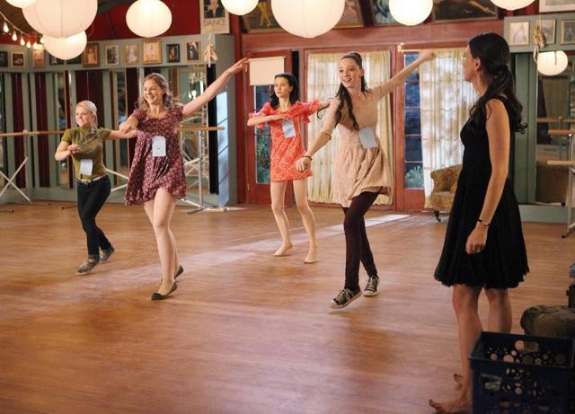 She arrives in his sleepy coastal town of Paradise, California, where it turns out that his description of living right on the water was correct, but that he omitted that he lives with his mother. The mother just happens to be a ballet teacher to a class of kids, but in particular to four teen friends, who hang out and all have different personalities, which I’m sure we’re going to learn more about as the show goes on. From what I can gather, one is super talented but cynical and unmotivated, one is really into it but doesn’t have the body type to be a great dancer and is insecure about that, one keeps talking about how her boobs are getting bigger, and then there’s a fourth who I think is maybe a follower of the first. Anyway, it turns out the guy is actually a super duper nice guy if actually a little creepy, and, yes, he realizes she doesn’t love him, but that’s okay, because he loves her and she might reciprocate some day. She is touched, they have sex, and then she gets into a fight with his mom at a party she’s throwing for the newly married couple. She wanders into the dance studio where the teens are drinking some beer and teaches them about auditions and shows them some dance moves. The mom walks in, sees how good she is with the girls, and the two of them go to the bar and talk. They have some heart to heart moments about lost promise and potential and dance, when all of a sudden her husband’s ex walks in with some terrible news.