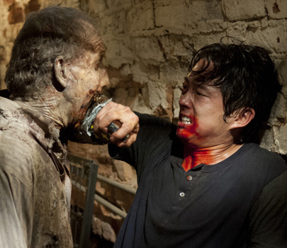 The interrogation scenes with Glen and Maggie have no exact parallels, but remind me of not one but two major interrogations in Lost. These are when Jack’s crew had Ben locked up, without knowing his identity, for the last few episodes in the second season, when Ben claimed his name was Henry Gale, and when the Others captured Jack, Sawyer and Kate early in the third season, and particularly when Juliet interrogated Jack (by the way, if we’re really stretching this out, Rick is obviously Jack and Daryl clearly a much nicer Sawyer). As in Lost, in The Walking Dead, we know these two groups are going to clash at some point, as the much weaker good guy crew dares to take on the much stronger bad guys. There’s something not quite right about the Governor and his crew, which is exactly the feeling that viewers developed with the Others, even besides their simply being antagonists – the idea that they’re up to something fishy and underhanded aside from just wanting to defeat our protagonists.