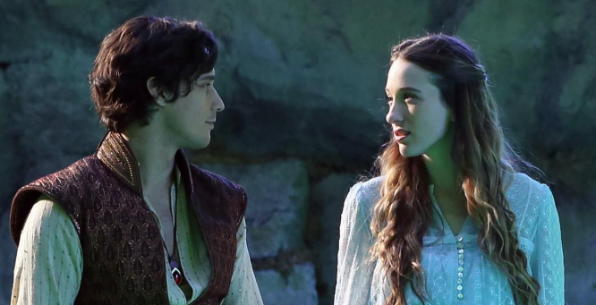 Now, in the second half of the episode, Alice and her buddy, the Knave of Hearts, are off on some sort of yellow brick road, questing to find her love, and they face a couple of obstacles, including a greedy Knave trying to steal from Alice, before episode’s end. They made it through them all though for now. The Red Queen, in the other surprise of the episode, is working for Jafar in a great confluence of Disney villains. He’s played by Lost’s Sayid, Naveen Andrews, who we see, has Alice’s genie locked up but for some reason needs her to unlock his power.