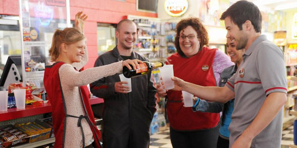 Moving on. Because the show takes place in an outer borough rather than Manhattan, the seven are real New Yorkers, and not urban hipsters or bankers. You can tell because they have extremely noticeable accents. The seven main characters work together at a gas station, in different roles. They are: